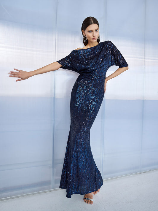 Della Navy Sequin Gown