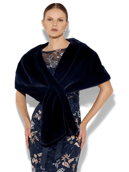 Karine Navy Faux Fur Wrap
